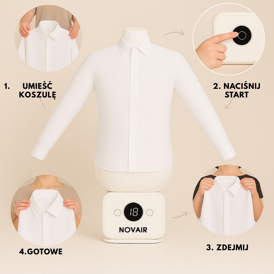 „Wyjąłem koszulę z suszarki i była totalnie pognieciona. Założyłem ją na automatyczną prasowalnicę Novair i w kilka minut wyglądała jak świeżo wyprasowana.
